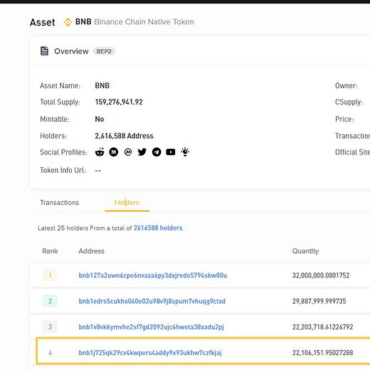 A couple weeks ago, blockchain researcher @cryptohippo65 went digging around in the BSC explorer and discovered an interesting anomaly: There was an address holding some 22 million BNB ($5.7 billion), but there was no record of how the BNB had arrived in this address: